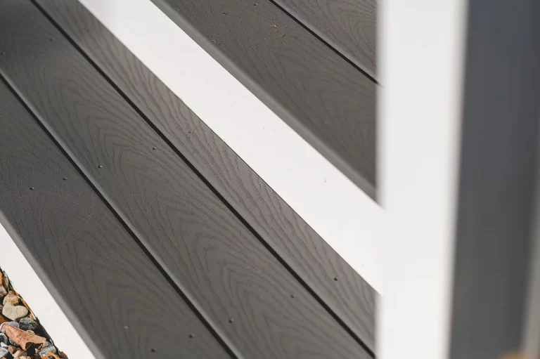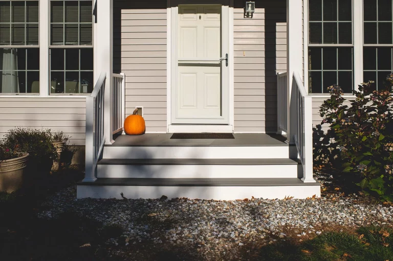 Another major project we worked on was the front porch. The porch originally had warped and splintered wood, rotted handrails, disproportionate porch posts, and a small staircase. We completely transformed the space by rebuilding the majority of the porch. We replaced the wood with composite decking materials. Then, we expanded the staircase, added railings and balusters, and wrapped the porch posts. Once we were finished, the new front porch looked modern and contemporary, and—most importantly—it was safe.